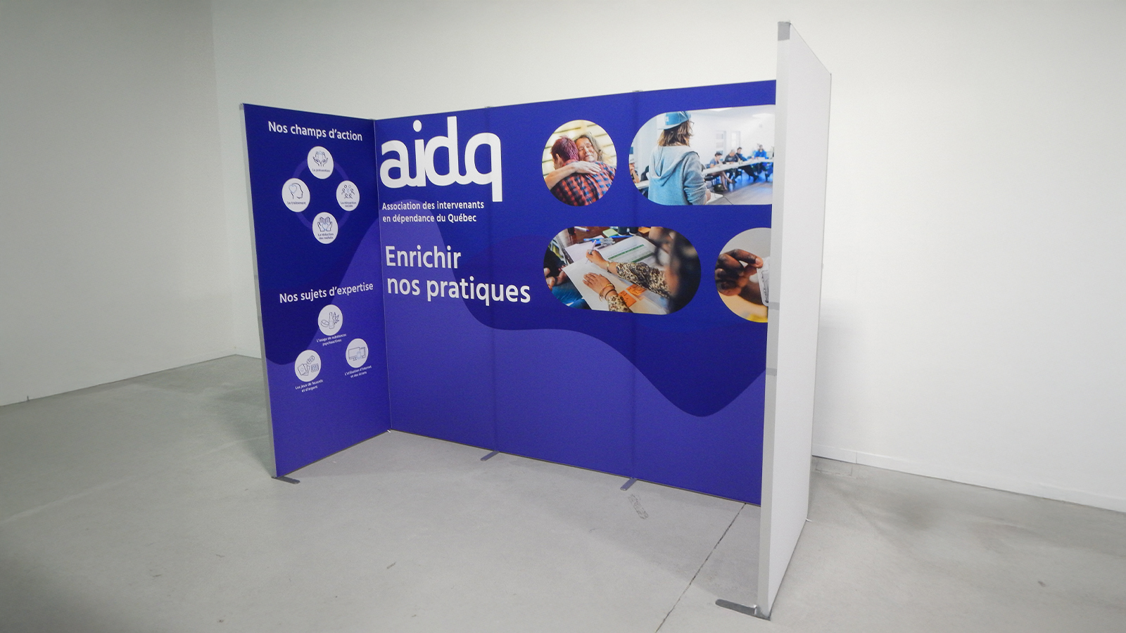 The secret of the Foldup system lies in combining simple structures to create a large-format booth. With a wide range of parts and connectors, the possibilities are endless! With this modular product, easily create a multitude of configurations. Let your imagination run wild until you achieve a complete exhibition stand.