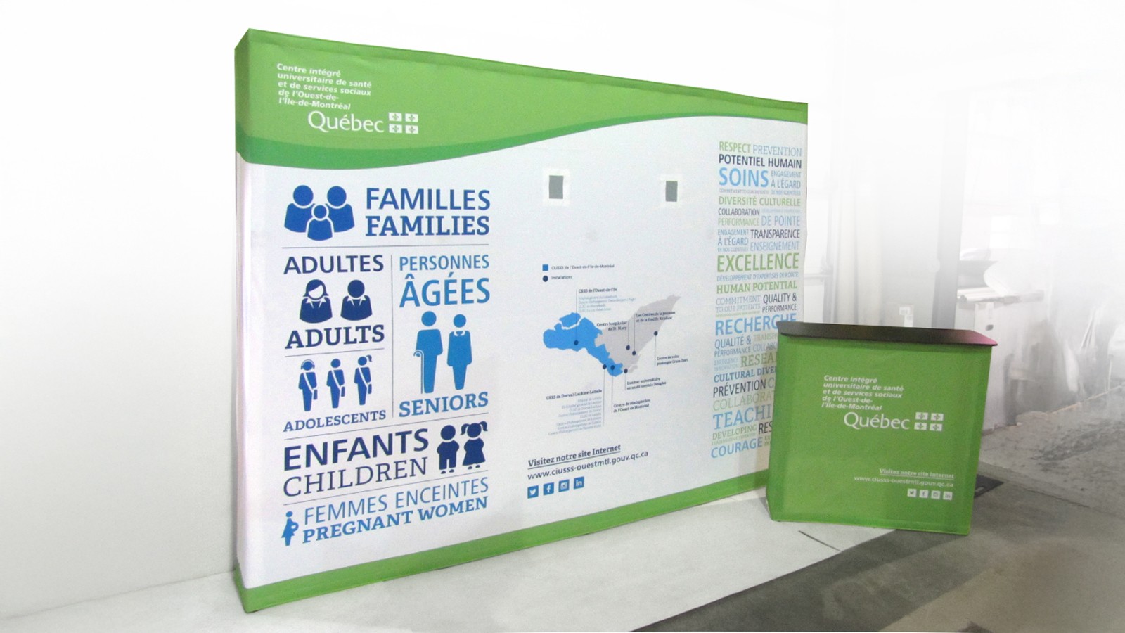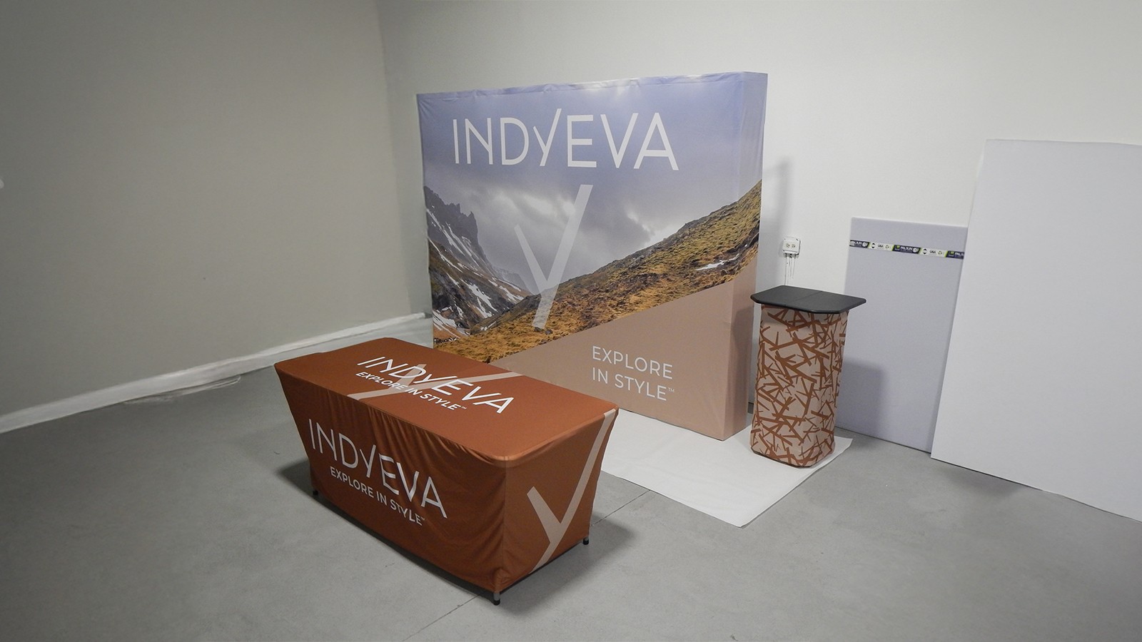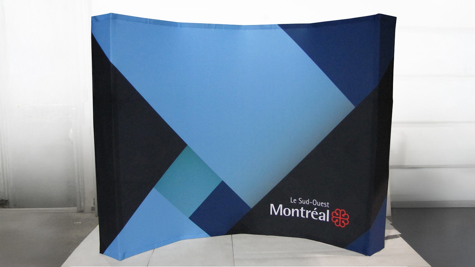 The Xpansion NG exhibit stand is an easy-to-use, foldable umbrella exhibit backdrop. It is covered by a fabric visual that is always connected to the structure to ensure easy installation and teardown.