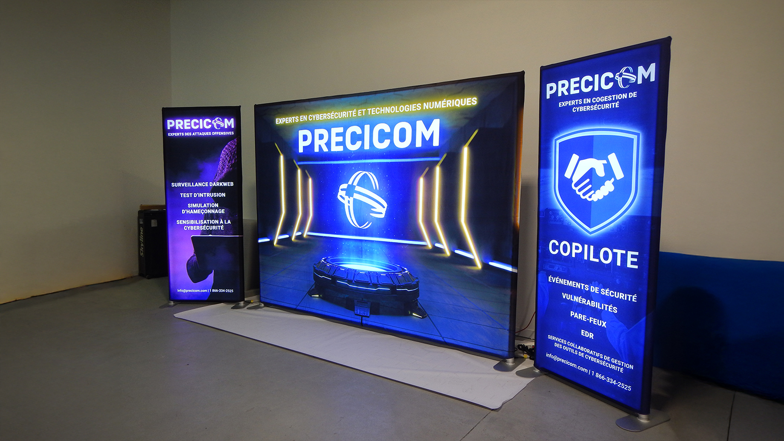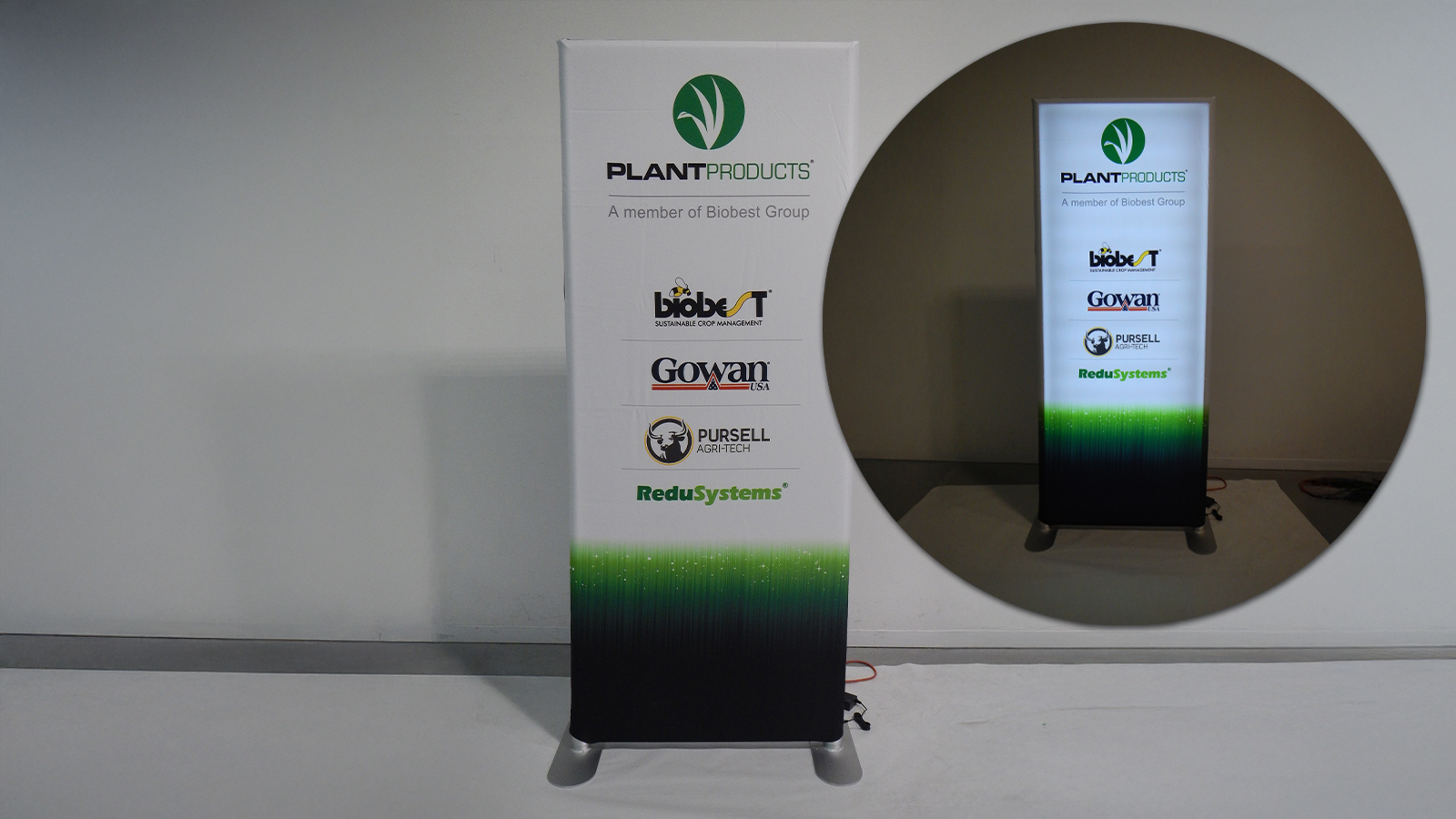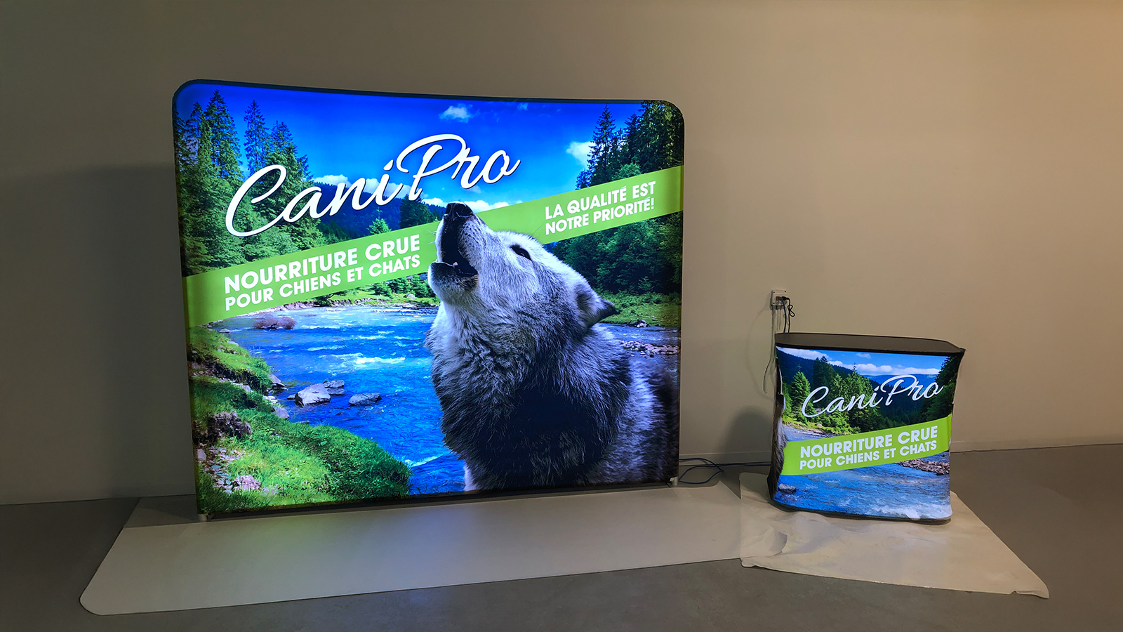 La pureté de ses lignes et la vivacité des couleurs rétro éclairées attireront tous les regards vers votre stand d’exposition.