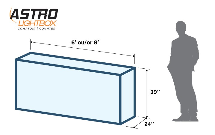 Le comptoir Astro Lightbox captera l’attention des visiteurs et transformera votre stand en un véritable point de convergence lors de toutes vos présences en salons d’exposition.